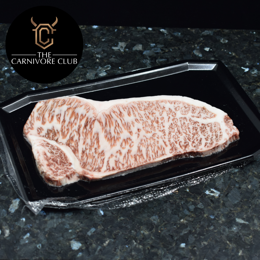 De entrecôte van A5 Wagyu uit Japan is een uitzonderlijk stuk vlees met een fenomenale vetmarmering. Afkomstig uit de regio Kagoshima, wordt dit rundvlees met zorg gefokt en minimaal 840 dagen gevoed volgens traditionele methoden, wat resulteert in een zijdezacht, boterzacht vlees met een intense umami-smaak.